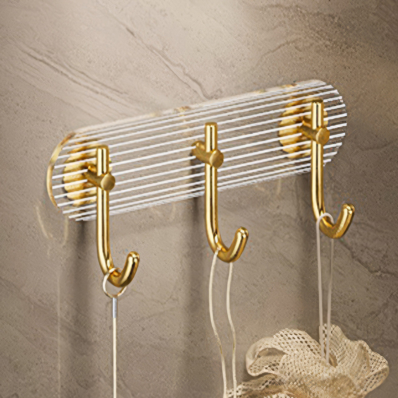 Настінна вішалка з трьома гачками стане стильним і функціональним доповненням вашого інтер'єру. Виготовлена з міцних матеріалів - акрилу та алюмінію, вона ідеально підходить для організації простору в спальні, ванній кімнаті, кухні або на балконі.